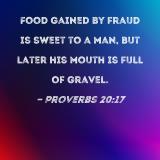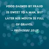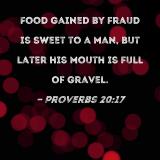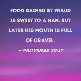 Food gained by fraud is sweet to a man, but later his mouth is full of gravel.