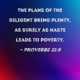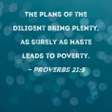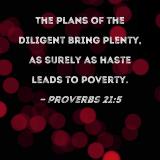 The plans of the diligent bring plenty, as surely as haste leads to poverty.