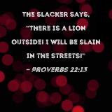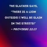 The slacker says, "There is a lion outside! I will be slain in the streets!"