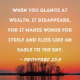 When you glance at wealth, it disappears, for it makes wings for itself and flies like an eagle to the sky.
