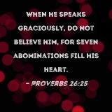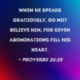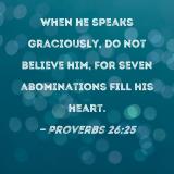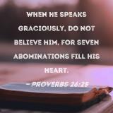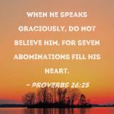 When he speaks graciously, do not believe him, for seven abominations fill his heart.