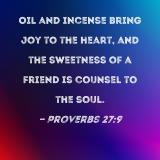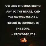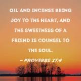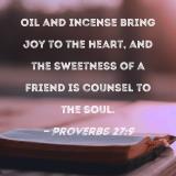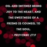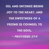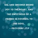 Oil and incense bring joy to the heart, and the sweetness of a friend is counsel to the soul.