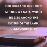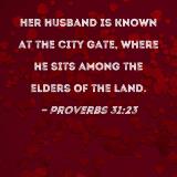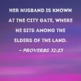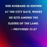 Her husband is known at the city gate, where he sits among the elders of the land.