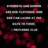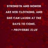 Strength and honor are her clothing, and she can laugh at the days to come.