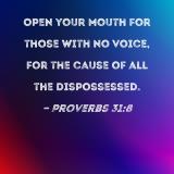 Open your mouth for those with no voice, for the cause of all the dispossessed.