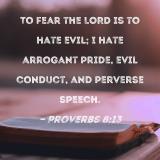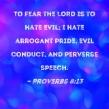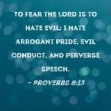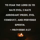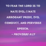 To fear the LORD is to hate evil; I hate arrogant pride, evil conduct, and perverse speech.