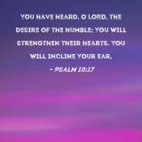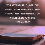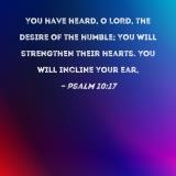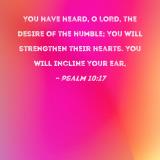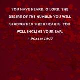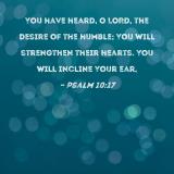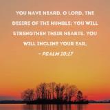 You have heard, O LORD, the desire of the humble; You will strengthen their hearts. You will incline Your ear,