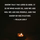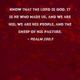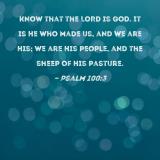 Know that the LORD is God. It is He who made us, and we are His; we are His people, and the sheep of His pasture.