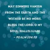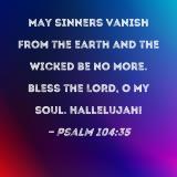 May sinners vanish from the earth and the wicked be no more. Bless the LORD, O my soul. Hallelujah!