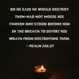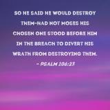 So He said He would destroy them--had not Moses His chosen one stood before Him in the breach to divert His wrath from destroying them.