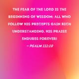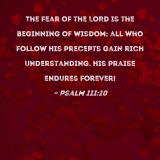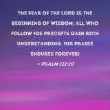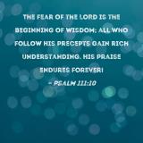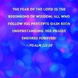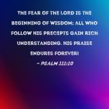 The fear of the LORD is the beginning of wisdom; all who follow His precepts gain rich understanding. His praise endures forever!