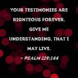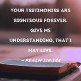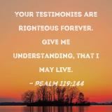 Your testimonies are righteous forever. Give me understanding, that I may live.