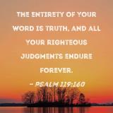 The entirety of Your word is truth, and all Your righteous judgments endure forever.