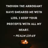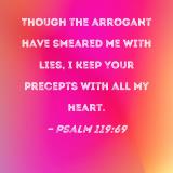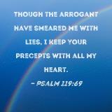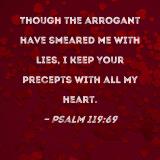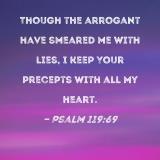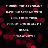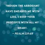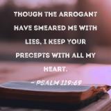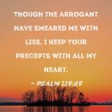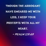 Though the arrogant have smeared me with lies, I keep Your precepts with all my heart.