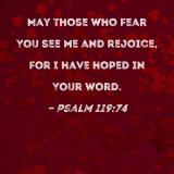 May those who fear You see me and rejoice, for I have hoped in Your word.