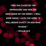 "For the cause of the oppressed and for the groaning of the needy, I will now arise," says the LORD. "I will bring safety to him who yearns."
