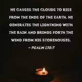 He causes the clouds to rise from the ends of the earth. He generates the lightning with the rain and brings forth the wind from His storehouses.