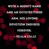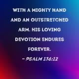 with a mighty hand and an outstretched arm. His loving devotion endures forever.