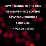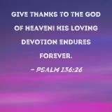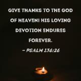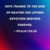 Give thanks to the God of heaven! His loving devotion endures forever.