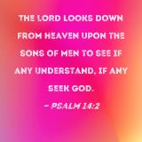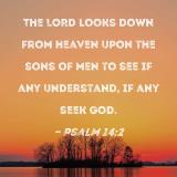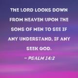 The LORD looks down from heaven upon the sons of men to see if any understand, if any seek God.