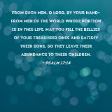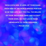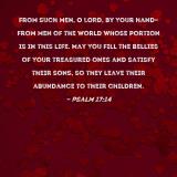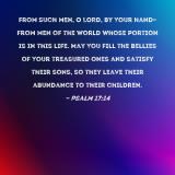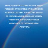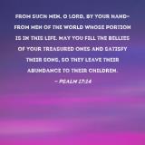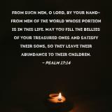 from such men, O LORD, by Your hand--from men of the world whose portion is in this life. May You fill the bellies of Your treasured ones and satisfy their sons, so they leave their abundance to their children.