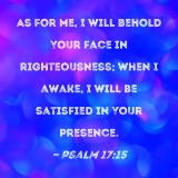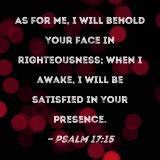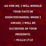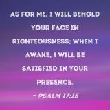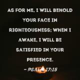 As for me, I will behold Your face in righteousness; when I awake, I will be satisfied in Your presence.