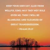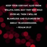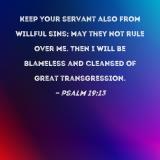 Keep Your servant also from willful sins; may they not rule over me. Then I will be blameless and cleansed of great transgression.