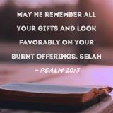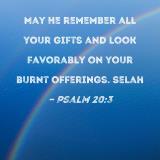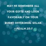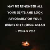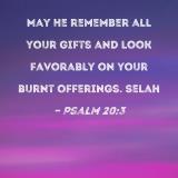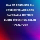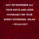 May He remember all your gifts and look favorably on your burnt offerings. Selah