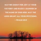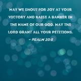 May we shout for joy at your victory and raise a banner in the name of our God. May the LORD grant all your petitions.