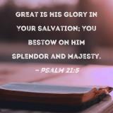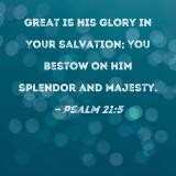 Great is his glory in Your salvation; You bestow on him splendor and majesty.