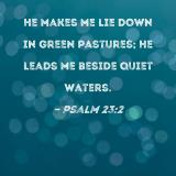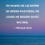 He makes me lie down in green pastures; He leads me beside quiet waters.