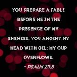 You prepare a table before me in the presence of my enemies. You anoint my head with oil; my cup overflows.
