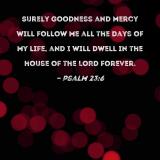 Surely goodness and mercy will follow me all the days of my life, and I will dwell in the house of the LORD forever.