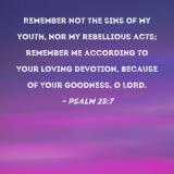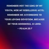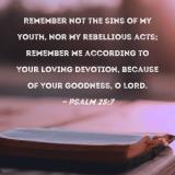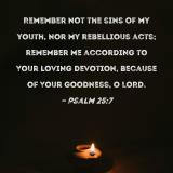 Remember not the sins of my youth, nor my rebellious acts; remember me according to Your loving devotion, because of Your goodness, O LORD.