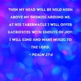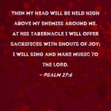 Then my head will be held high above my enemies around me. At His tabernacle I will offer sacrifices with shouts of joy; I will sing and make music to the LORD.