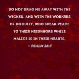 Do not drag me away with the wicked, and with the workers of iniquity, who speak peace to their neighbors while malice is in their hearts.