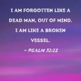 I am forgotten like a dead man, out of mind. I am like a broken vessel.