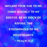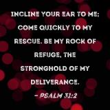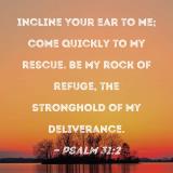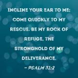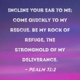 Incline Your ear to me; come quickly to my rescue. Be my rock of refuge, the stronghold of my deliverance.