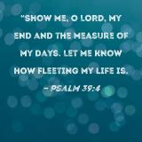 "Show me, O LORD, my end and the measure of my days. Let me know how fleeting my life is.