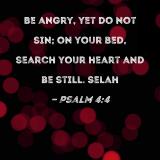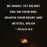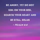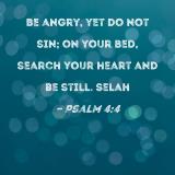 Be angry, yet do not sin; on your bed, search your heart and be still. Selah