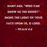 Many ask, "Who can show us the good?" Shine the light of Your face upon us, O LORD.
