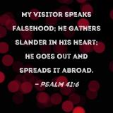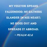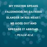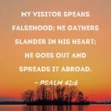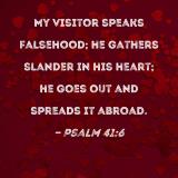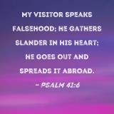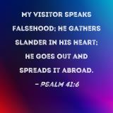 My visitor speaks falsehood; he gathers slander in his heart; he goes out and spreads it abroad.