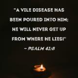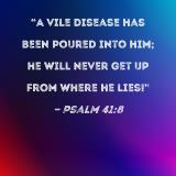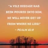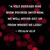 "A vile disease has been poured into him; he will never get up from where he lies!"