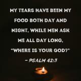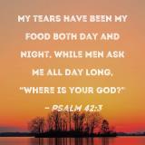 My tears have been my food both day and night, while men ask me all day long, "Where is your God?"