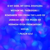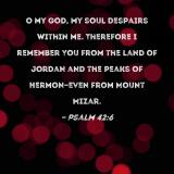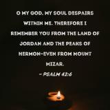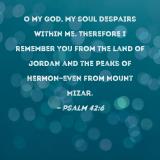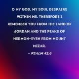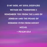 O my God, my soul despairs within me. Therefore I remember You from the land of Jordan and the peaks of Hermon--even from Mount Mizar.