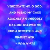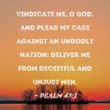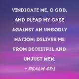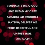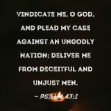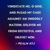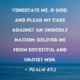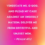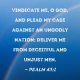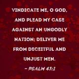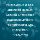 Vindicate me, O God, and plead my case against an ungodly nation; deliver me from deceitful and unjust men.