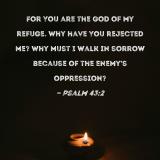 For You are the God of my refuge. Why have You rejected me? Why must I walk in sorrow because of the enemy's oppression?