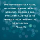 We have heard with our ears, O God; our fathers have told us the work You did in their days, in days of long ago.