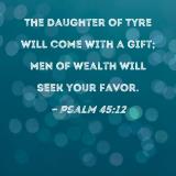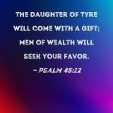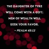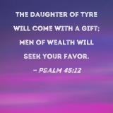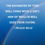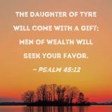 The Daughter of Tyre will come with a gift; men of wealth will seek your favor.