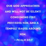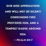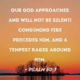 Our God approaches and will not be silent! Consuming fire precedes Him, and a tempest rages around Him.